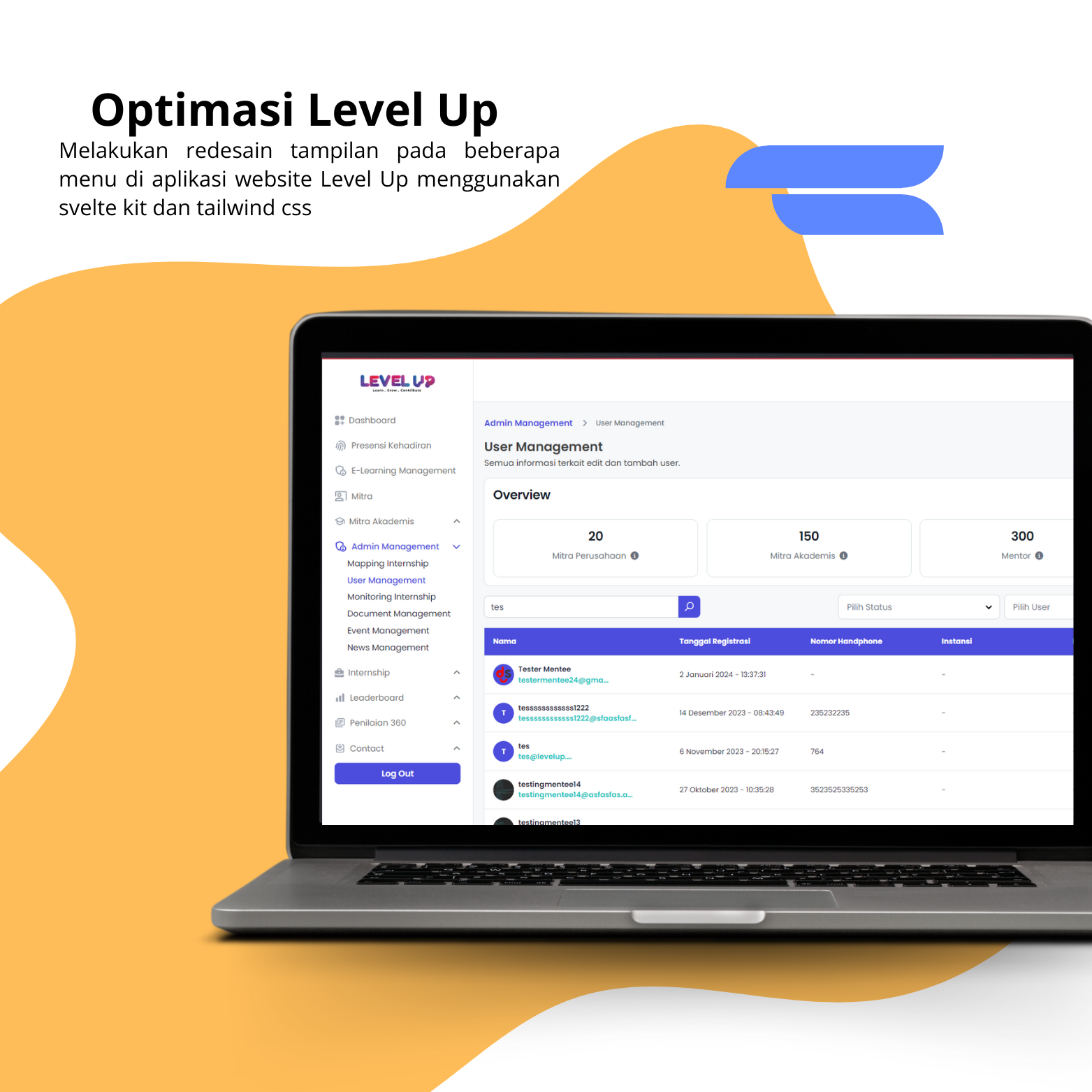 Melakukan redesain tampilan pada beberapa menu di aplikasi website Level Up menggunakan svelte kit dan tailwind css