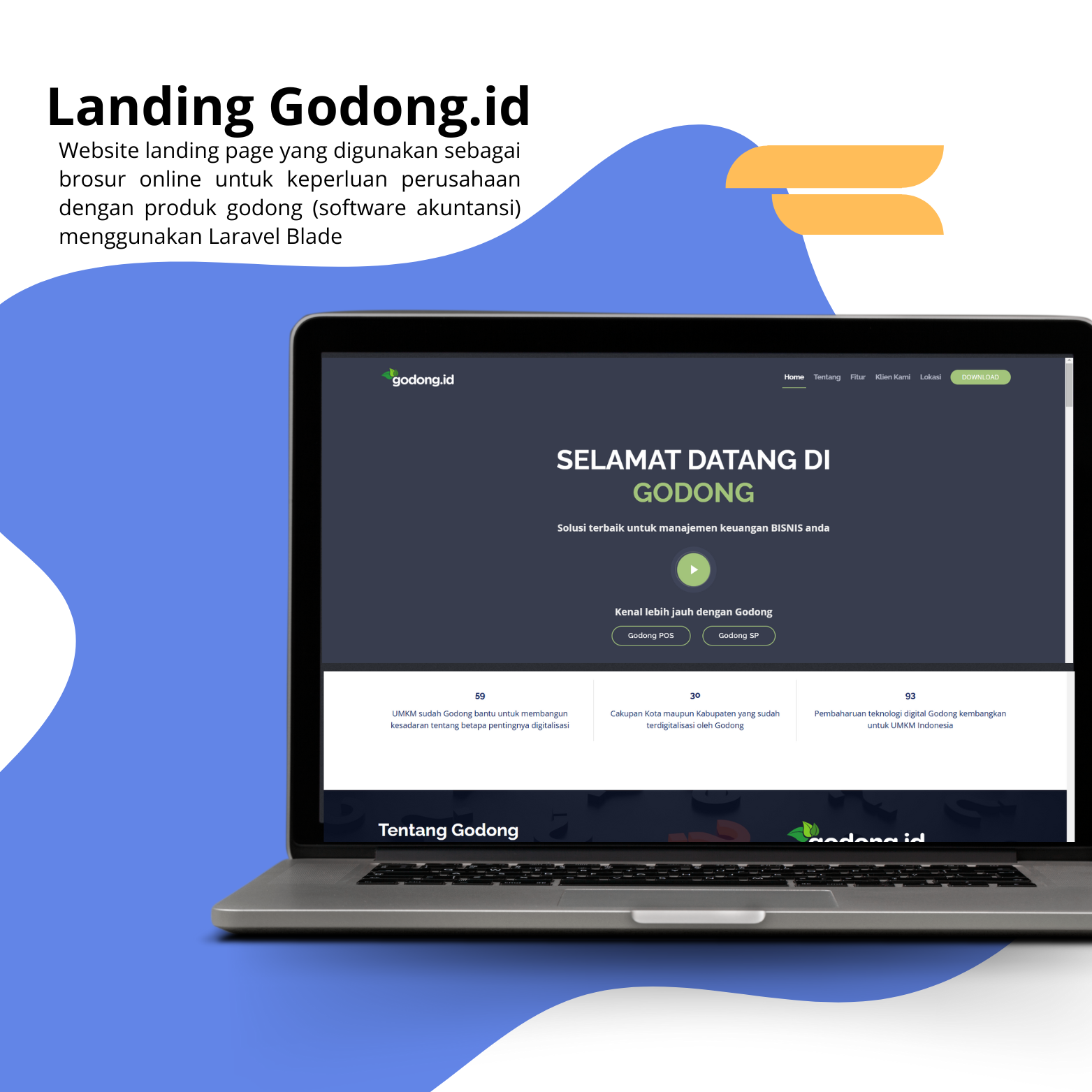 Website landing page yang digunakan sebagai brosur online untuk keperluan perusahaan dengan produk godong (software akuntansi) menggunakan Laravel Blade