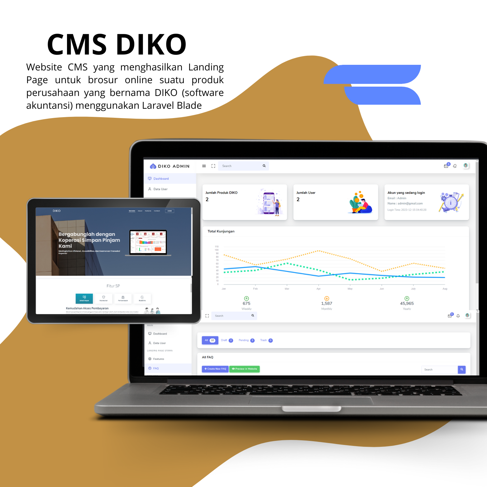 Website CMS yang menghasilkan Landing Page untuk brosur online suatu produk perusahaan yang bernama DIKO (software akuntansi) menggunakan Laravel Blade